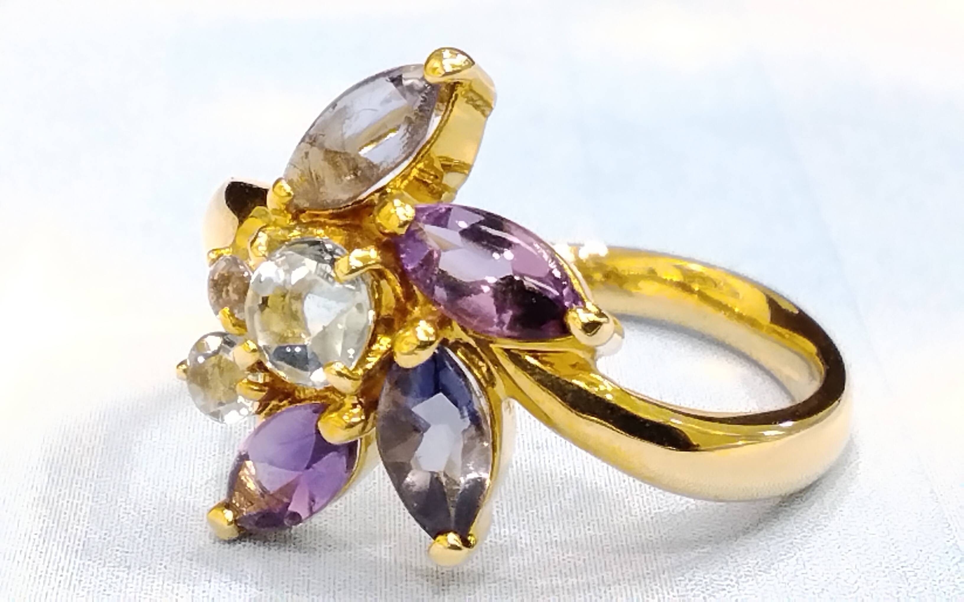 K18リング マルチカラー アクア/アメジスト/アイオ #12