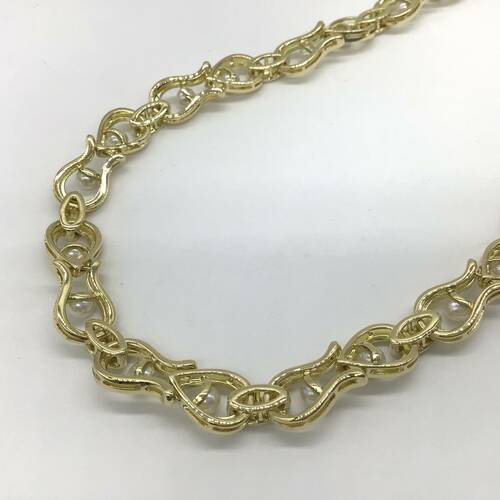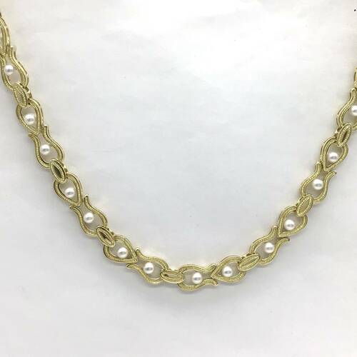 6月誕生石の真珠の中でアコヤは最もオーソドックスな真珠です。上品な光沢と色合いが美しく、ゴールドの輝きに華を添えた豪華なネックレスです。