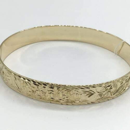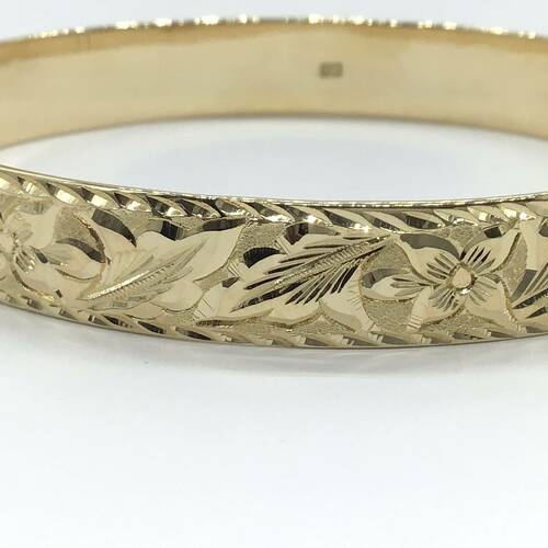 ボタニカルな彫りが入ったデザインのバングルです。重量感があります。