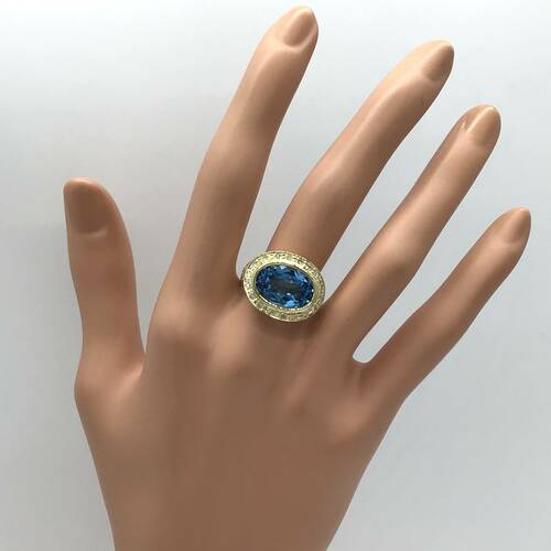 | コメント | 11月誕生石のトパーズはカラーバリエーションが豊富な宝石です。その中ブルートパーズは海や空の色のように澄み切った青色は偶然による独自の美しさがあります。8.2キャラットの大きさが豪華なリングです。サイドの透かし柄もおしゃれです。 |