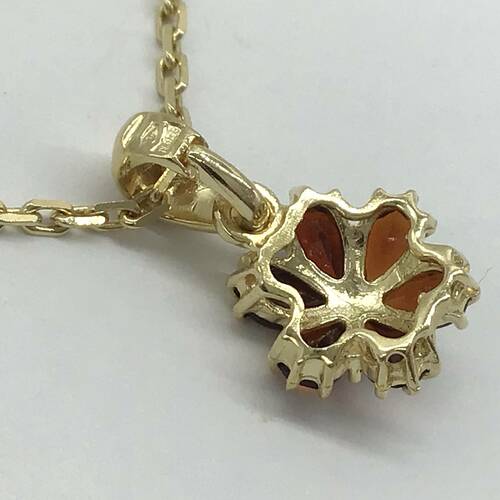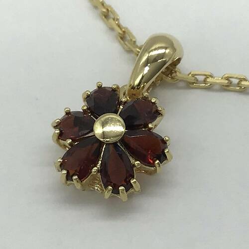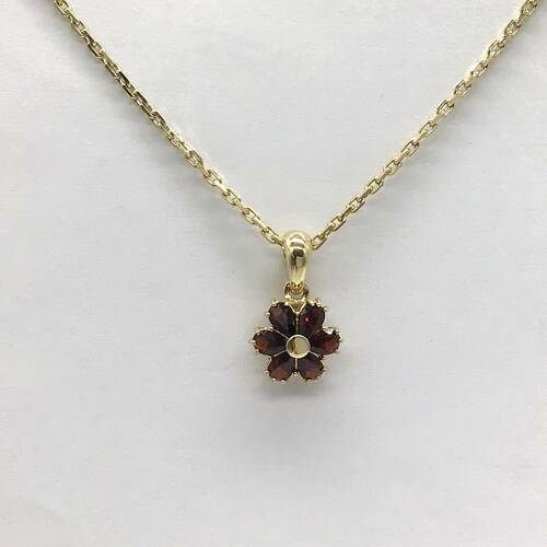 | コメント | 1月誕生石のガーネットが6石施され、赤色の花が咲いた可愛らしいデザインネックレスです。 |