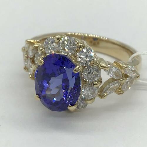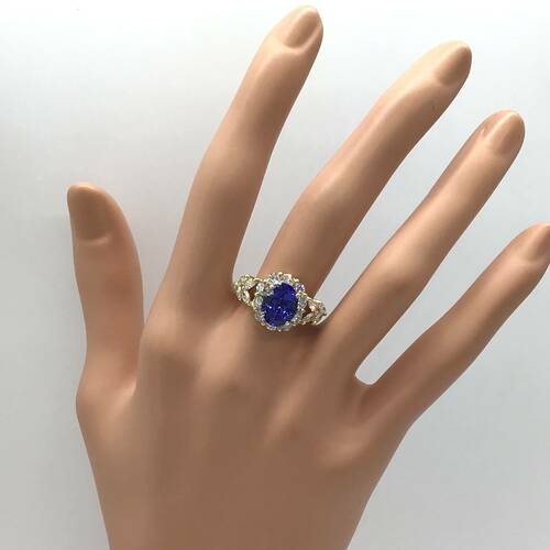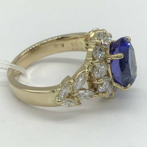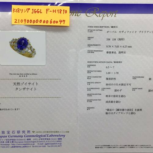 | コメント | 12月誕生石のタンザナイトは深い青色の輝きが印象的な宝石です。多色性があるので、角度を変える度に青や紫が強くなります。タンザナイトの3.38キャラットの大きさと回りの1.58キャラットのダイヤモンドが豪華です。鑑別書付き。 |