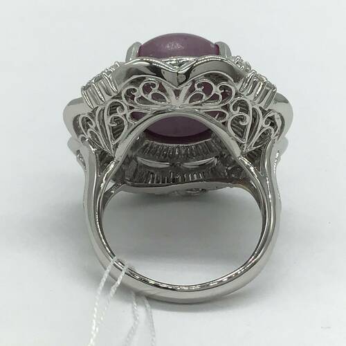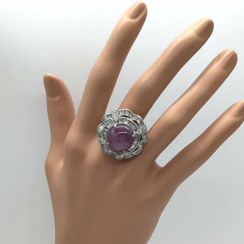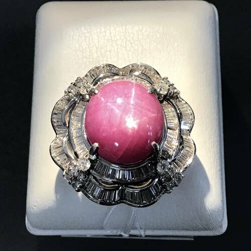 | コメント | 9月誕生石のサファイアはカラーバリエーションが多く、その中でもスターサファイアはまるで星が輝くような光を放ち、見る角度によって様変わりする光はとても神秘的です。 22.7キャラットのスターサファイアと2.16キャラットのダイヤモンドの輝きはとて豪華です。 |