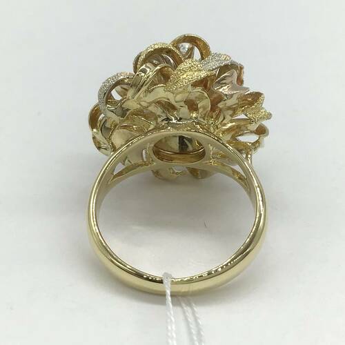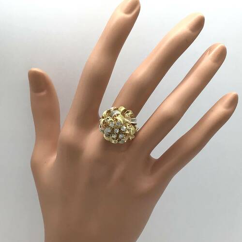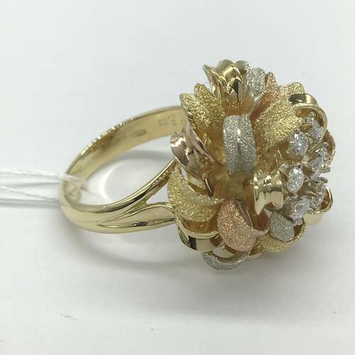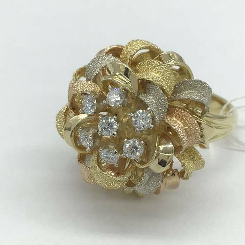 中心に7石のダイヤモンド、艶消しの3カラーのゴールドが豪華で、花束みたいなデザインが素敵なリングです。