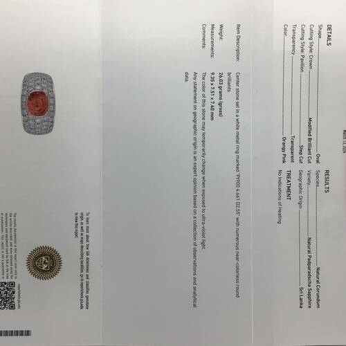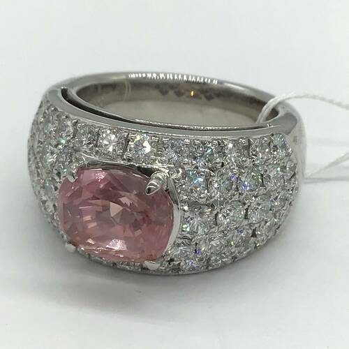 | コメント | パパラチアサファイアはオレンジとピンクの中間色のみに名前がつけられます。非常に狭い色範囲のため大変希少で「幻のサファイア」と言われています。また4.661キャラットという大きさとダイヤモンドも2.55キャラットが施された豪華なリングです。非加熱。鑑別書付き。 |