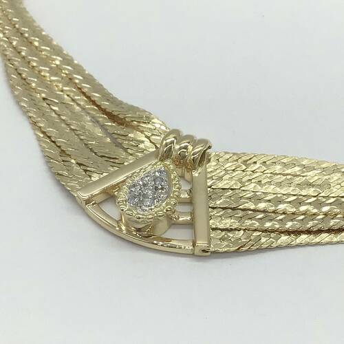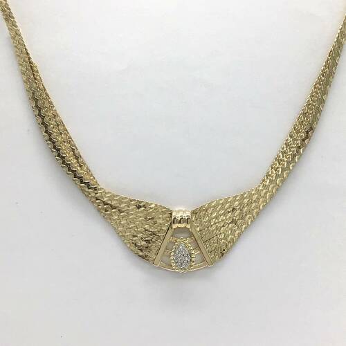 | コメント | しっとり柔らかく首元に沿うチェーンになっています。中心にはダイヤモンドが施され、晴れの席にピッタリなネックレスです。 |
