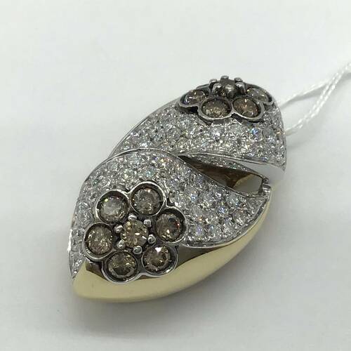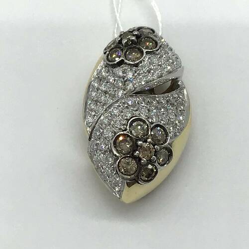 | コメント | 花の形をしたブラウンダイヤモンドが2ヶ所に、ダイヤモンドが豪華に敷き詰められた、輝きが美しいペンダントトップです。 |