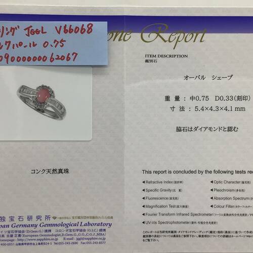 | コメント | コンクパールは南北アメリカの間に挟まれたカリブ海だけに棲む「コンク貝」と呼ばれる巻き貝の一部。マットな質感のサーモンピンクが特徴です。鑑別書付き。 |