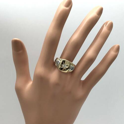 | コメント | 4月誕生石のダイヤモンドが中心に1石が施された、豪華で重量感のある豪華なメンズリングです。 |