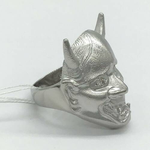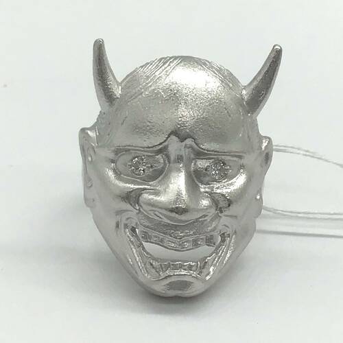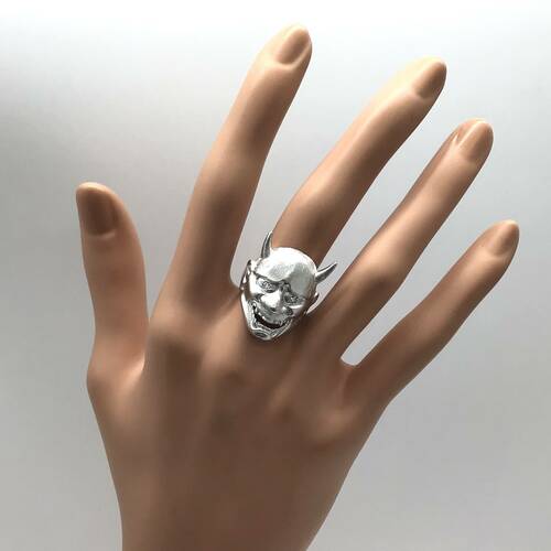 般若のお面のリングです。 般若と言うと怖いイメージがありますが、「仏の智慧(ちえ)」と言う意味の仏教用語です。「物事をありのままに知ること」を指します。