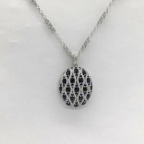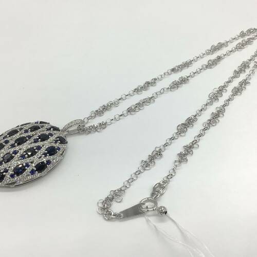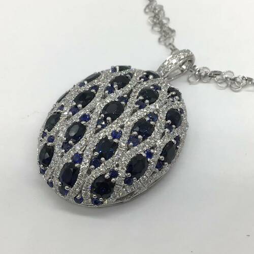 9月誕生石のサファイアが6.52キャラット、ダイヤモンドが1.50キャラット施された豪華なネックレスです。