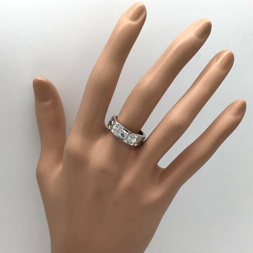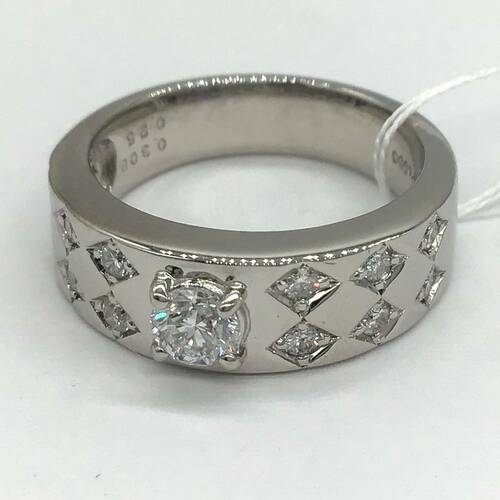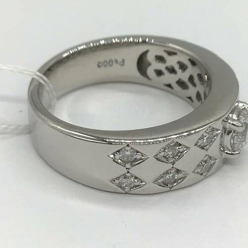 | コメント | 4月誕生石のダイヤモンドが中心に1石、両サイドにはダイヤ柄にダイヤモンドが施されたおしゃれなリングです。 |