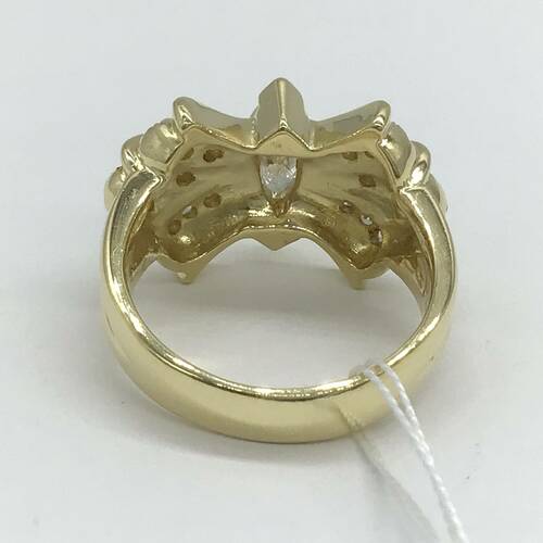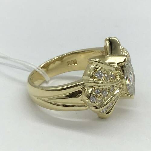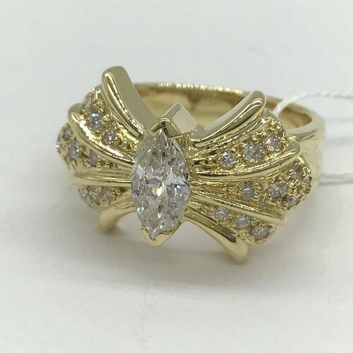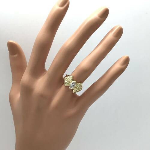 4月誕生石のダイヤモンドが中心に1石、リボンのようなデザインに敷き詰められた、豪華であり可愛らしいリングです。
