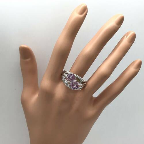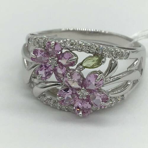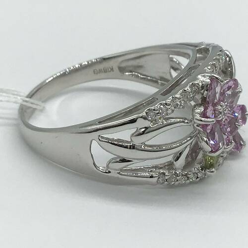 | コメント | 9月誕生石のサファイアはカラーバリエーションが豊富です。二つの花びらはピンクサファイア、一つの葉にはペリドットが施されていて、とても可愛らしいデザインのリングです。 |