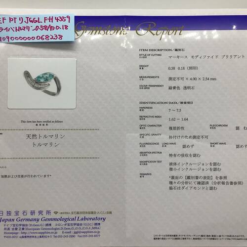 | コメント | 10月誕生石のトルマリンは全ての色があると言われるほど多彩な色を持ちます。その中でも最高評価を受けるのがパライバトルマリンです。透明感のある美しい輝きのリングです。鑑別書付き。 |
