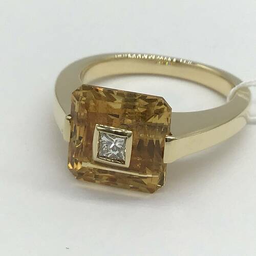 | コメント | 11月誕生石の太陽のような輝きを持つシトリン、幸運を呼ぶ「希望の宝石」と呼ばれています。四角いシトリンの中心にダイヤモンドが1石施された、珍しいデザインリングです。 |