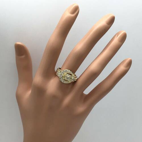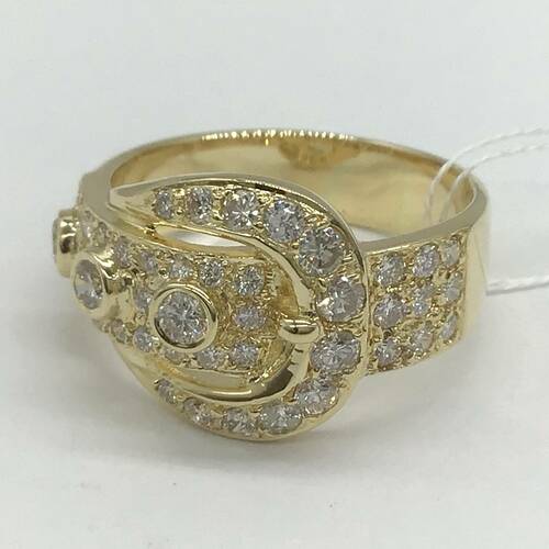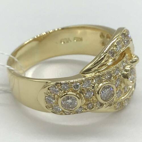 ベルトデザインにダイヤモンドがしきつめられた、豪華でおしゃれなリングです。