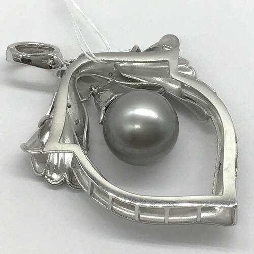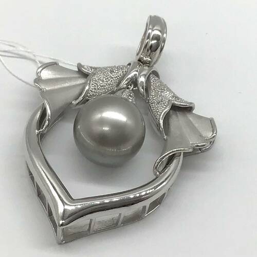 | コメント | 6月誕生石のパールの中でもクロチョウは、黒蝶貝という天然の二枚貝から産出された真珠です。個性的なデザインのペンダントトップです。バチカン部分が離れるので、お持ちの太いチェーンやリボンでチョーカーとしても楽しめます。 |