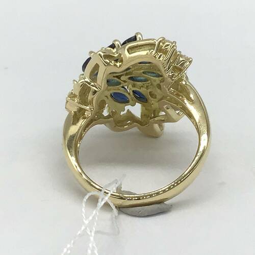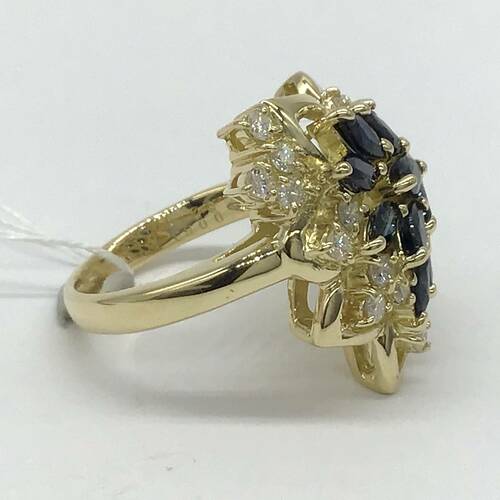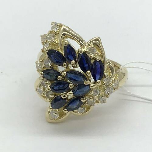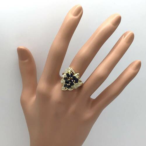 | コメント | 扇状に広がった豪華なデザインに9月誕生石のサファイアが施された、豪華なリングです。 |