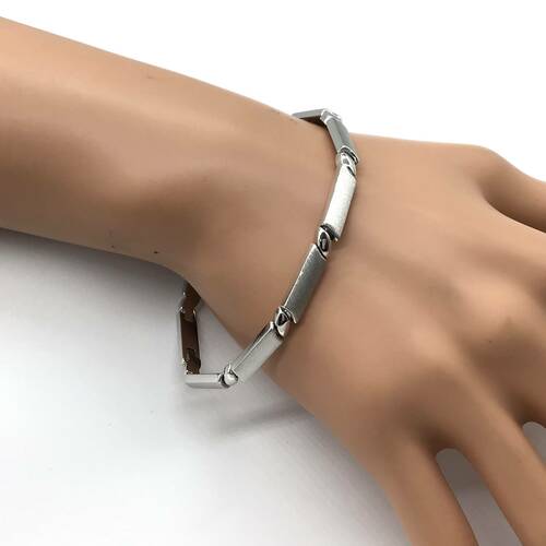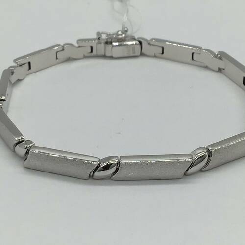 ホワイトゴールド艶消しが高級感があります。シンプルなデザインなので、シーンやファッションを選ばないおしゃれなブレスレットです。