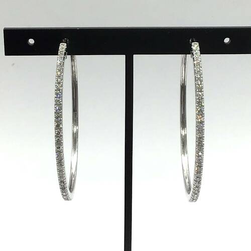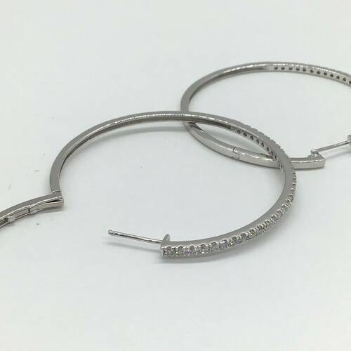 大きめのループピアスです。半周にダイヤモンドが施されています。