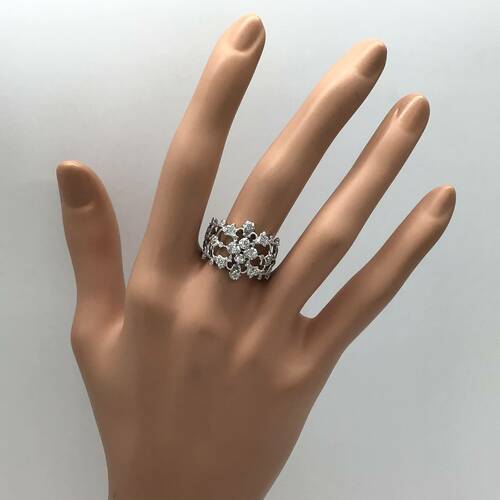 ティアラのようなデザインに、ダイヤモンドが散りばめられたおしゃれなリングです。