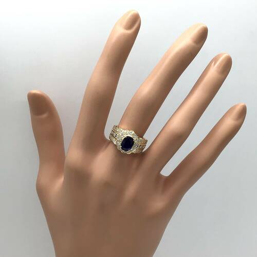 | コメント | 中心に9月誕生石のサファイアが1.77キャラットが1石、回りにはダイヤモンドがキラキラと輝きを放つ豪華なリングです。 |