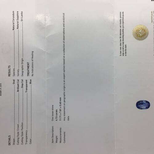9月誕生石のサファイアはスリランカで多く産出されています。特徴は色が淡めで透明度が高く爽やかな印象です。また加熱処理をせずに美しい色味と輝きを持つ高品質なサファイアです。鑑別書付き。