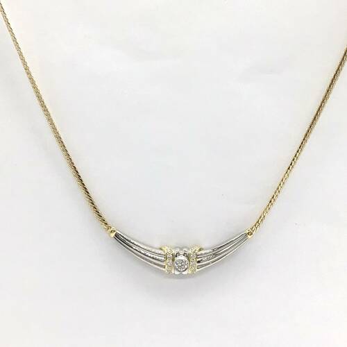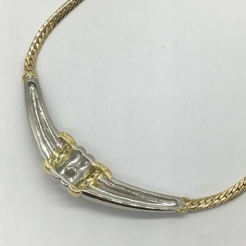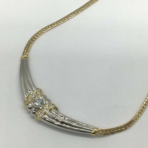 | コメント | 4月誕生石のダイヤモンドが中心に1石と両サイドにも施され、ゴールドとプラチナコンビが豪華なネックレスです。しなやかに肌に沿うチェーンが素敵です。 |