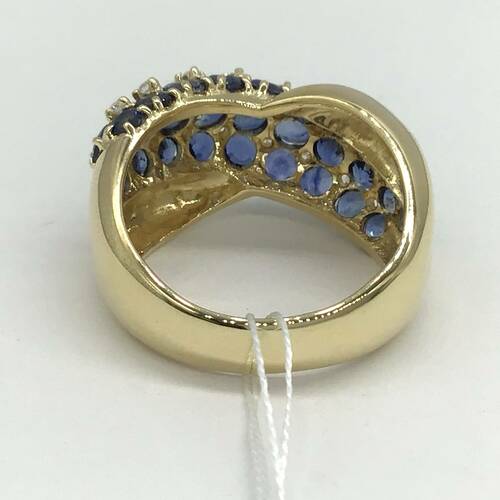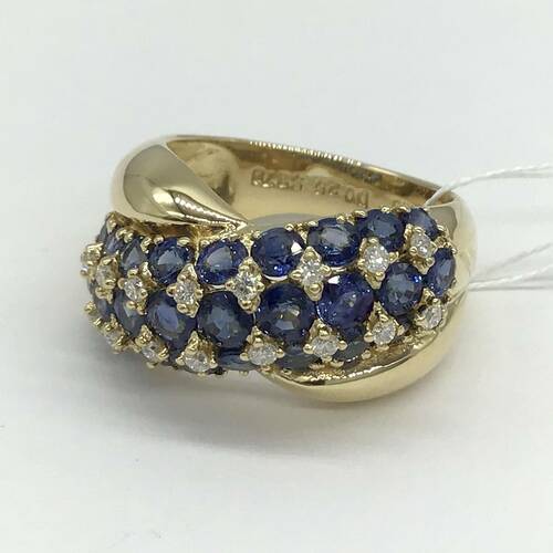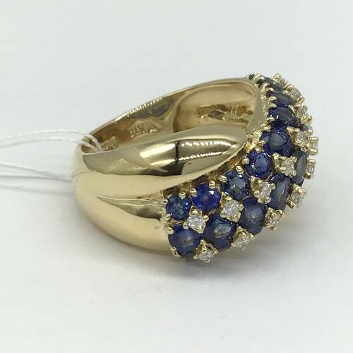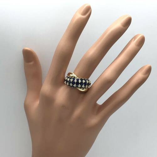 3.78キャラットのサファイアが敷き詰められ、間にダイヤモンドが施された輝きが豪華なリングです。