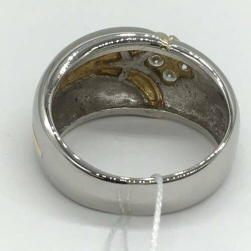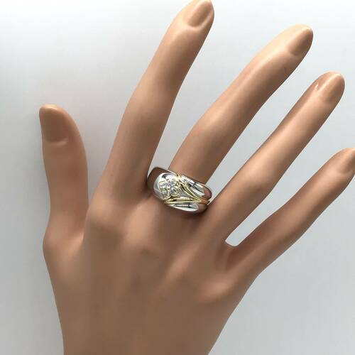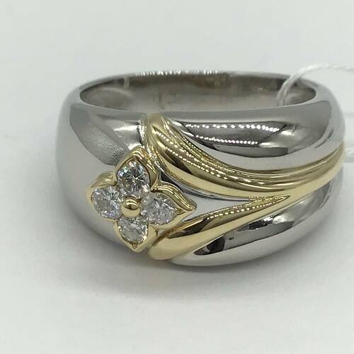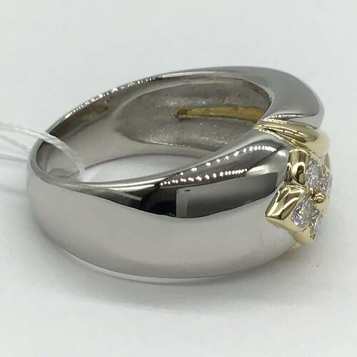 プラチナにゴールドのラインとダイヤモンドがキラリと輝くおしゃれなメンズリングです。