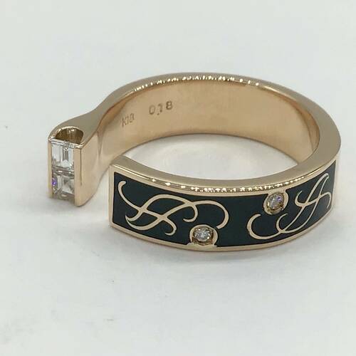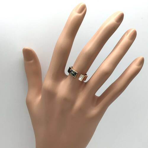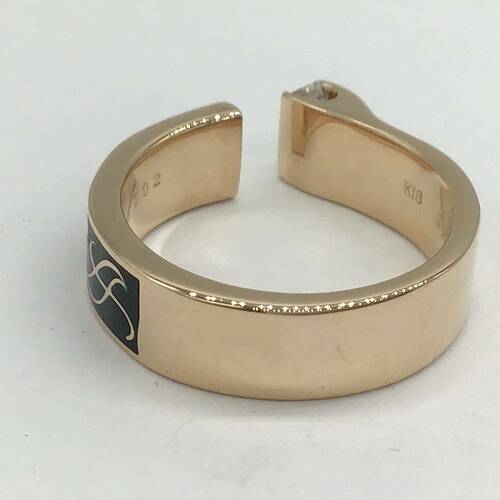 個性的なデザインに黒のエナメルがおしゃれなリングです。