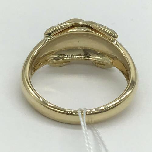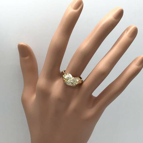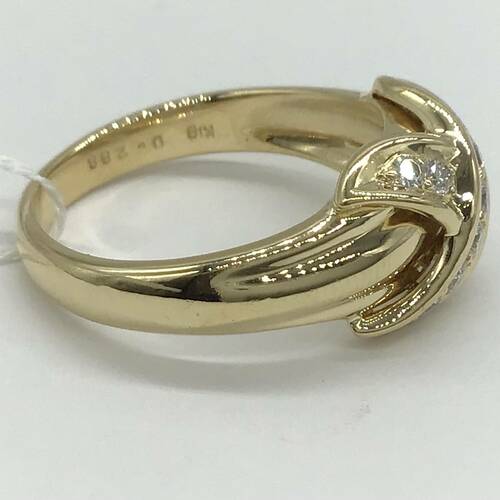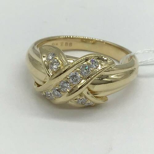 クロスされた部分にダイヤモンドが施された、おしゃれなリングです。
