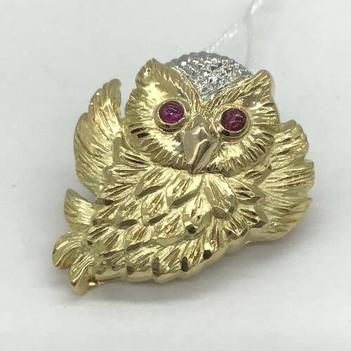 福を呼ぶフクロウがモチーフの可愛らしいブローチです。お持ちのチェーンを付けてネックレスとしても楽しめます。