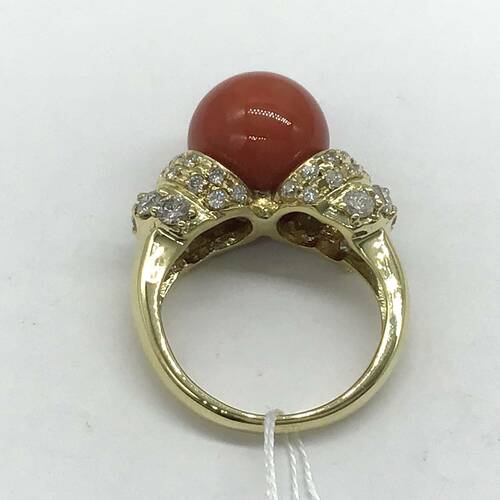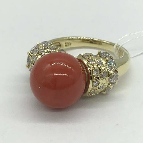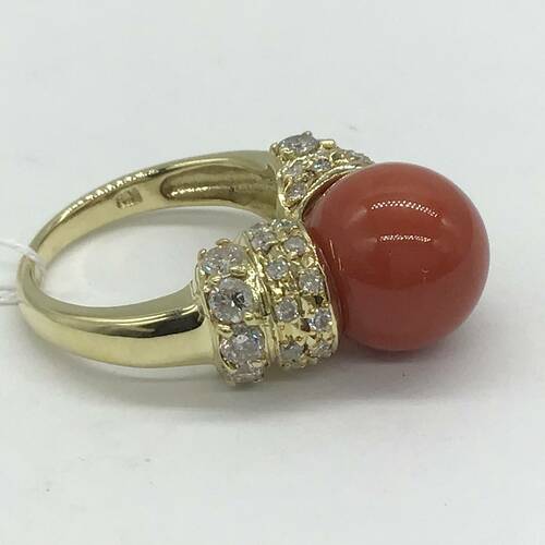 3月誕生石の11MM珠の珊瑚の赤色とダイヤモンドの輝きが素敵なリングです。