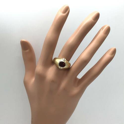 | コメント | 1月誕生石のガーネットの代表的なカラー深い赤色は情熱や血を連想させることから「情熱の石」と言われています。ガーネットの上下にはダイヤモンドが施され、コロンとしたフォルムが可愛らしいリングです。 |