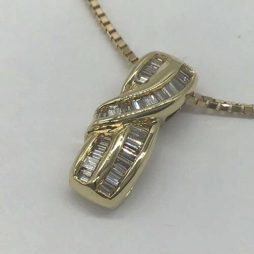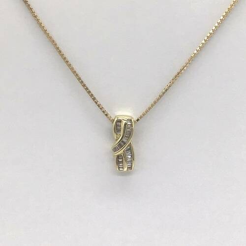 4月誕生石のダイヤモンドが施されたスッキリとしたデザインのネックレスです。スライドアジャスターにより長さ調整が可能。