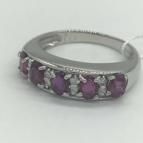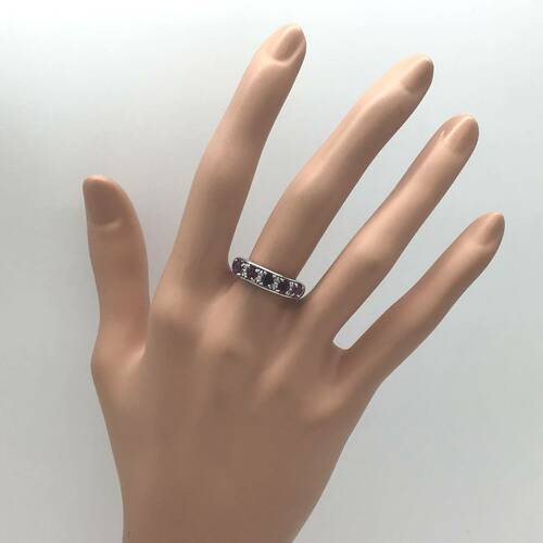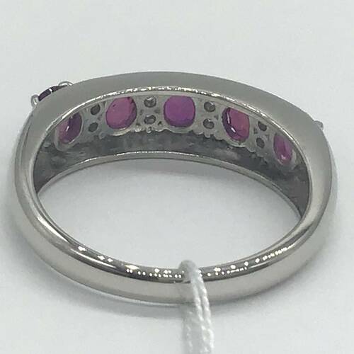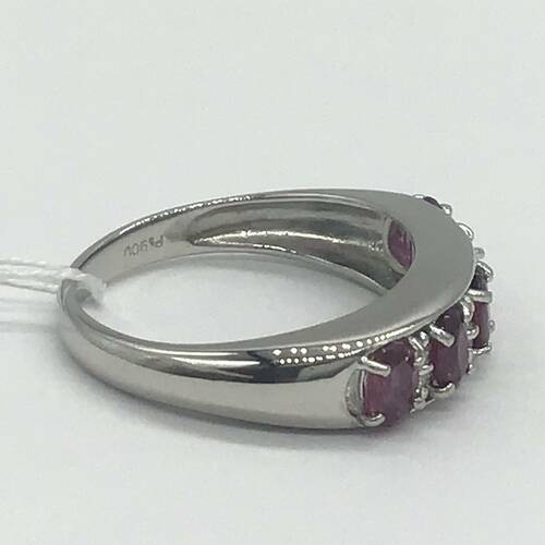 7月誕生石のルビーが横に5石並んだおしゃれなリングです。