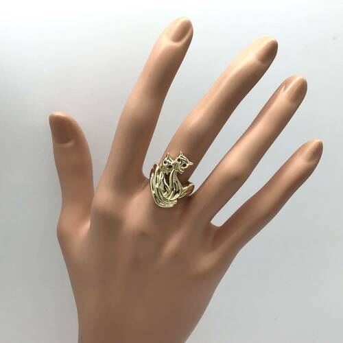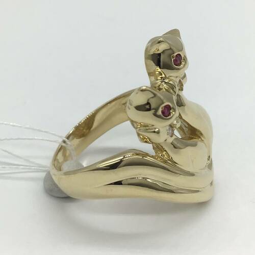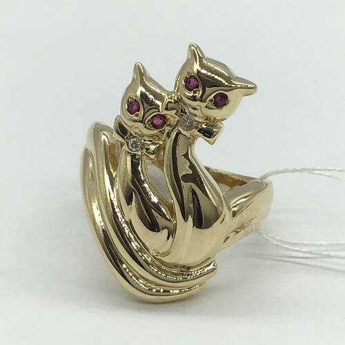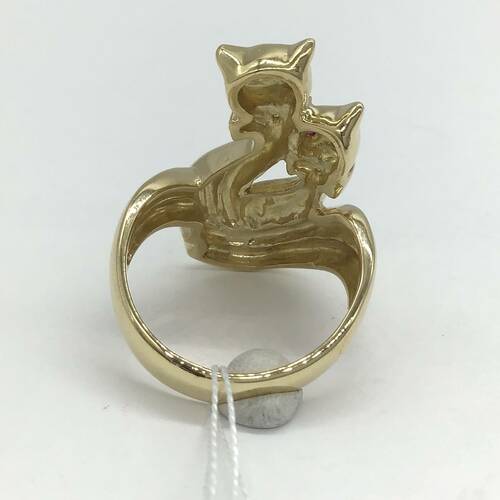 2匹の美しい猫が寄り添った可愛らしいリングです。目にはルビーが施されています。