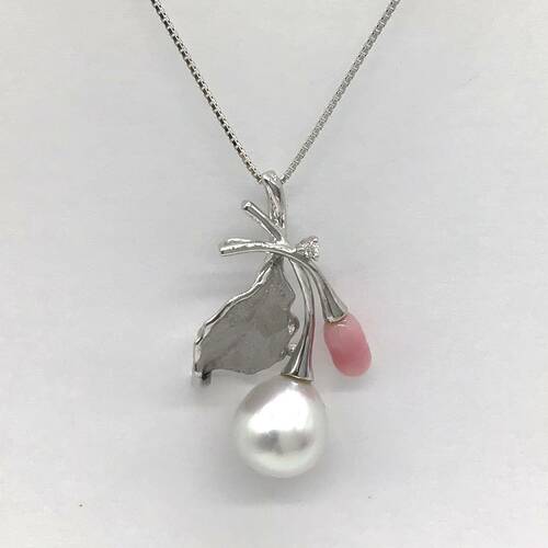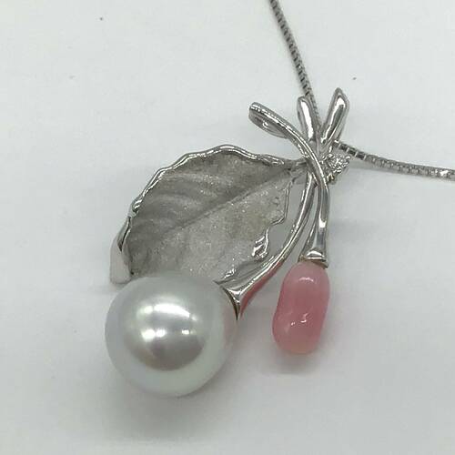 | コメント | コンクパールは「コンク貝」と呼ばれる巻貝の貝殻の一部でマットな質感のサーモンピンクです。シロチョウとの組み合わせが可愛らしいデザインになっています。鑑別書付き。 |