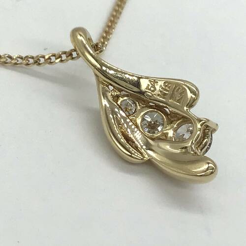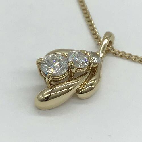 大小のダイヤモンドが3石施された可愛らしいネックレスです。