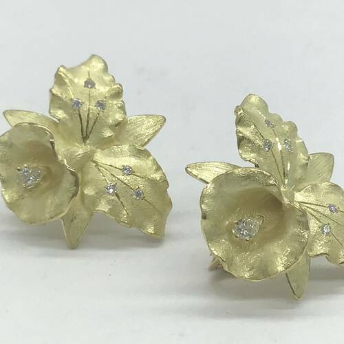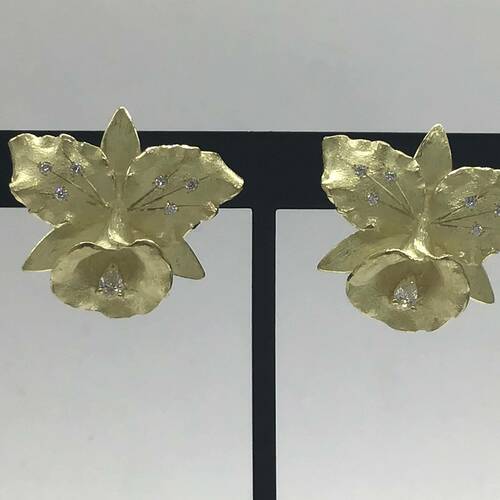 カトレアの花のモチーフがおしゃれなイヤリングです。