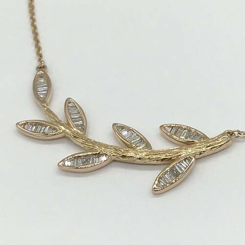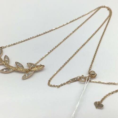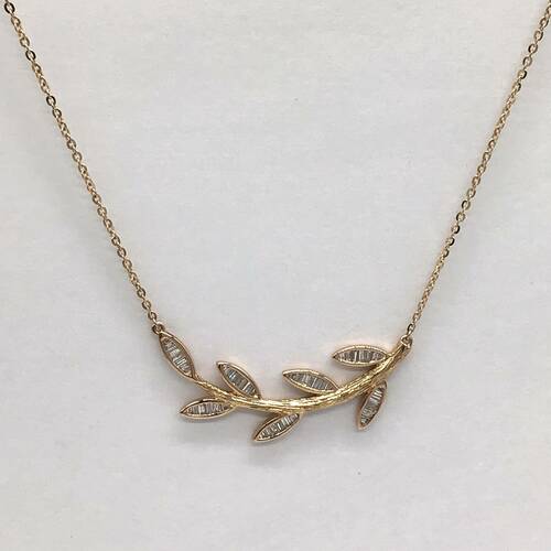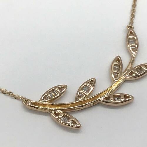 葉にはダイヤモンドが施されたボタニカルデザインのネックレスです。スライドアジャスターにより長さ調整が可能。