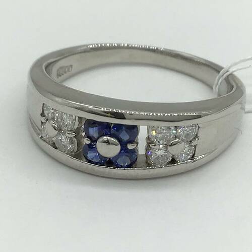 9月誕生石のサファイアの花びらとダイヤモンドの花びらが可愛らしいメンズリングです。