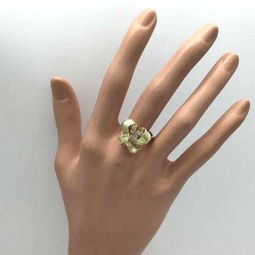 リボンにダイヤモンドが施されたおしゃれなリングです。