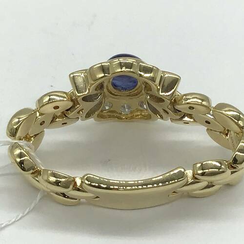 9月誕生石のサファイアの回りにはダイヤモンドが豊富に施され、チェーンの部分はしなやかな作りになっています。