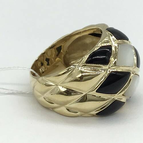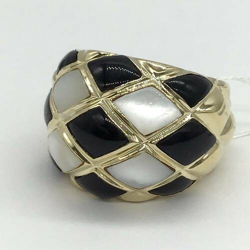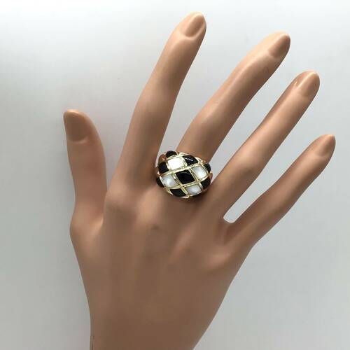 黒のオニキスと白のシェルのモノートーンがおしゃれなリングです。