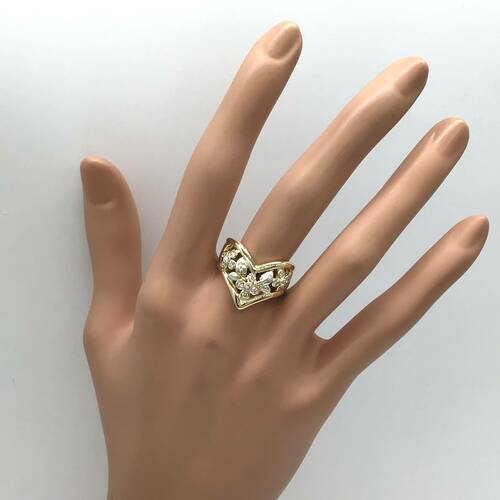 V字のデザインは指を一層綺麗に見える効果があります。透かし模様がおしゃれなリングです。