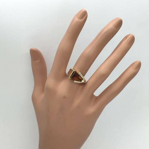 11月誕生石のシトリンは太陽のような輝きを放ち、幸運を呼ぶ「希望の宝石」と呼ばれています。斬新なデザインのおしゃれなリングです。