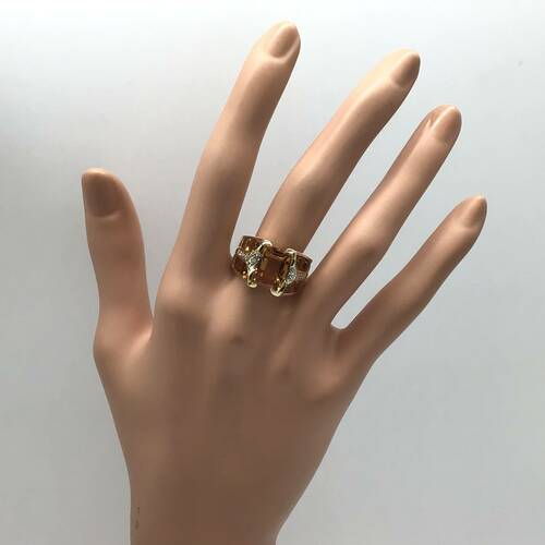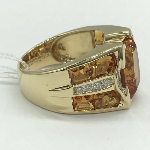 11月誕生石のシトリンは太陽のような輝き持ち、幸運を呼ぶ「希望の宝石」と呼ばれています。6.76キャラットが豪華なリングです。